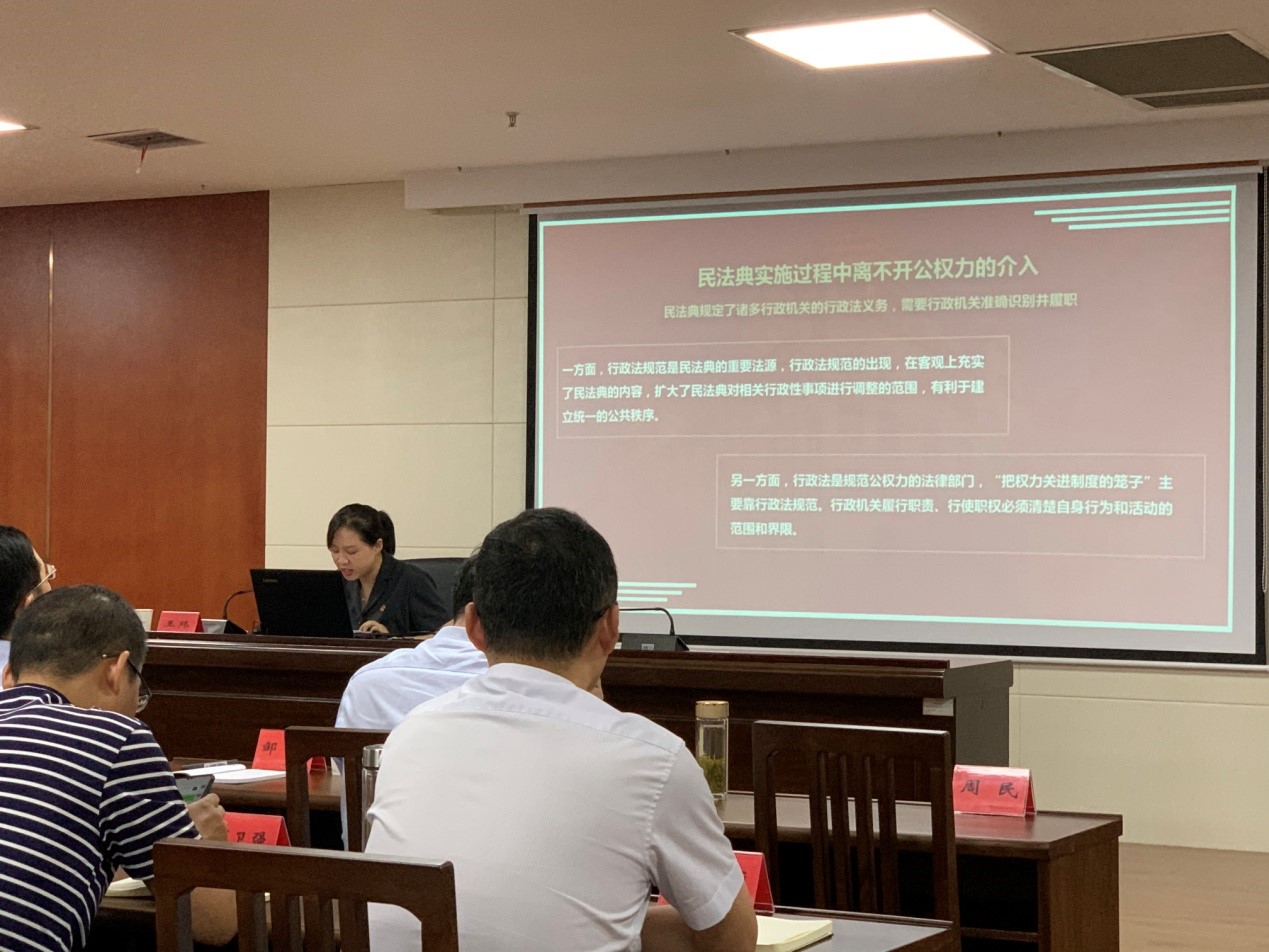 为深入贯彻落实习近平总书记关于民法典的重要论述精神,进一步提升机关人员对《民法典》的理解、贯彻、运用。8月11日下午,市行政审批局邀请海陵区人民法院行政庭王玮庭长作了题为《民法典时代的行政执法》的专题法律讲座。市行政审批局全体工作人员及各市(区)行政审批局法制条线工作人员参加。